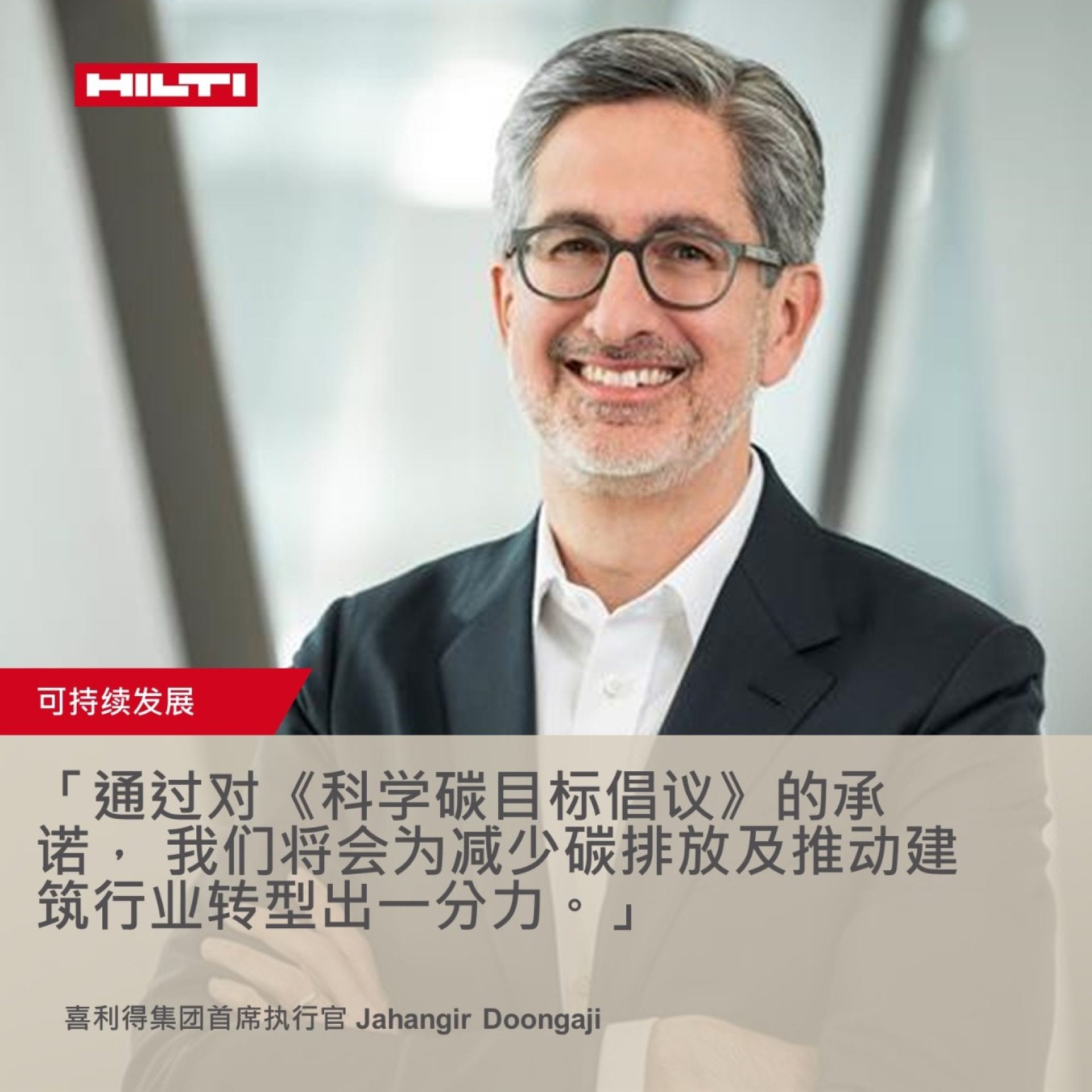 喜利得集團首席執(zhí)行官Jahangir Doongaji表示:"除了在2023年前實現(xiàn)二氧化碳中和的宏大目標外,我們同時也致力于在實現(xiàn)凈零的過程中應對自身經(jīng)營之外的排放問題。我們致力支持科學碳目標,這有助我們減少全價值鏈的排放。 此舉幫助我們眾多客戶實行可持續(xù)發(fā)展倡議,使我們能夠為所在行業(yè)急需的轉型貢獻力量。"